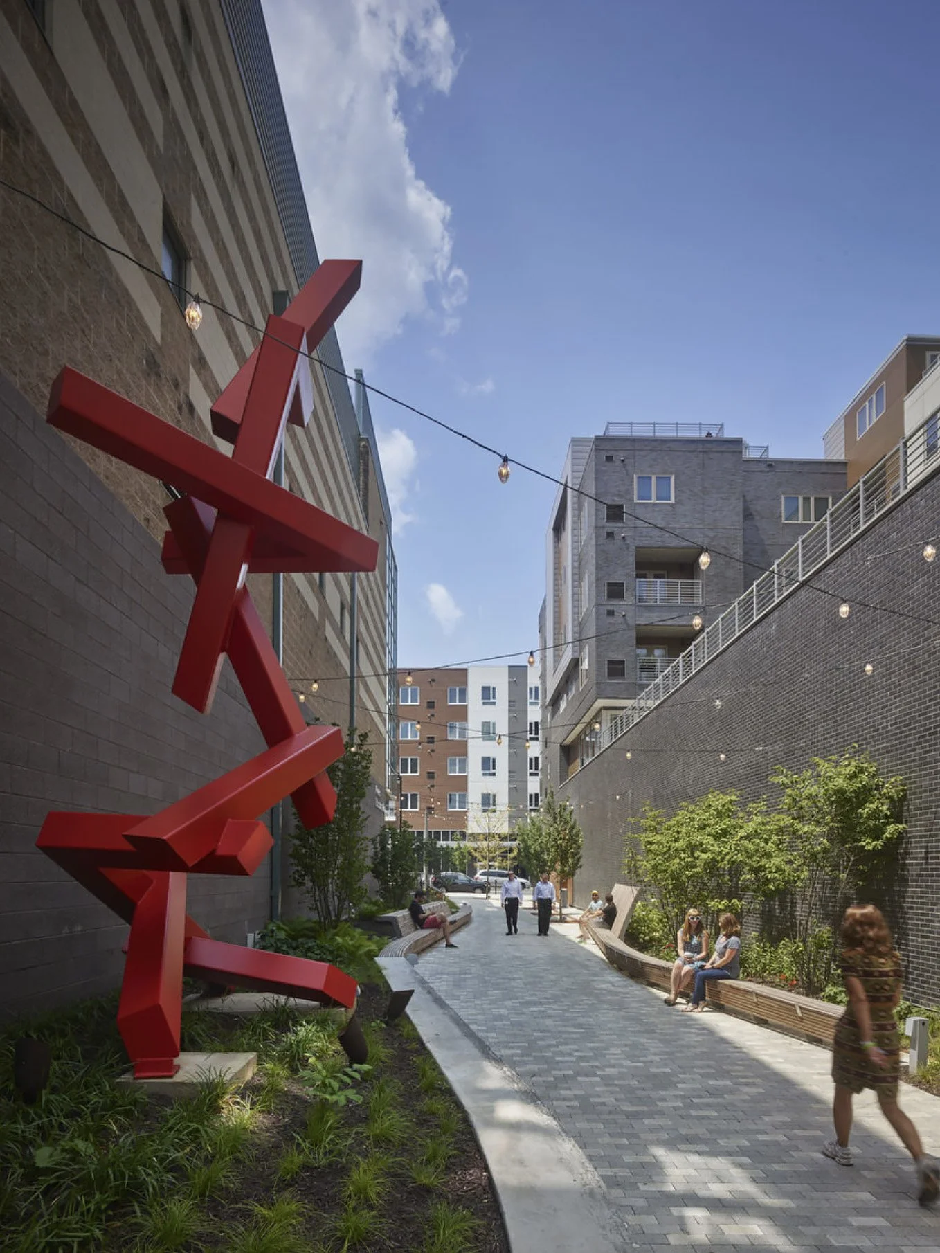 This mixed-use development of 71 luxury apartments consists of studios, one-, and two-bedroom units including double-height lofts with outdoor roof terraces. The residential units begin on the second floor with social and amenity spaces adjacent to an open courtyard that faces the Arts Walk and Miller Symphony Hall while the ground floor provides public access to parking and retail. The concentration of housing along this pedestrian-friendly arts and culture path has catalyzed the creation of galleries, retail, cafes and boutiques in the downtown core, connecting the broader Allentown community in new and different ways.